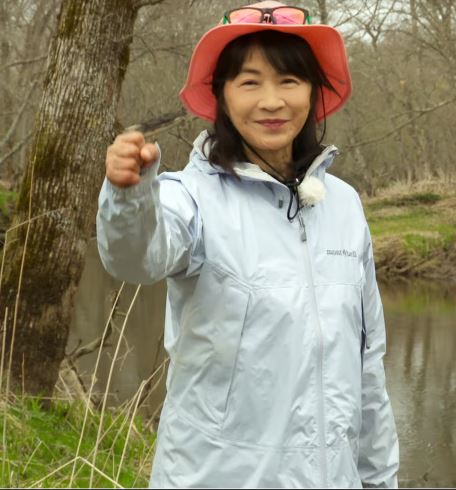 (美佐子さんが得意な海釣りではなく初心者に近い川釣りに挑戦)