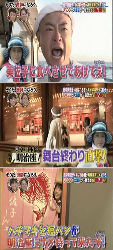 (東MAXから送られたものも含めて)昔から美佐子さんの明治座楽屋は鯛の絵柄。