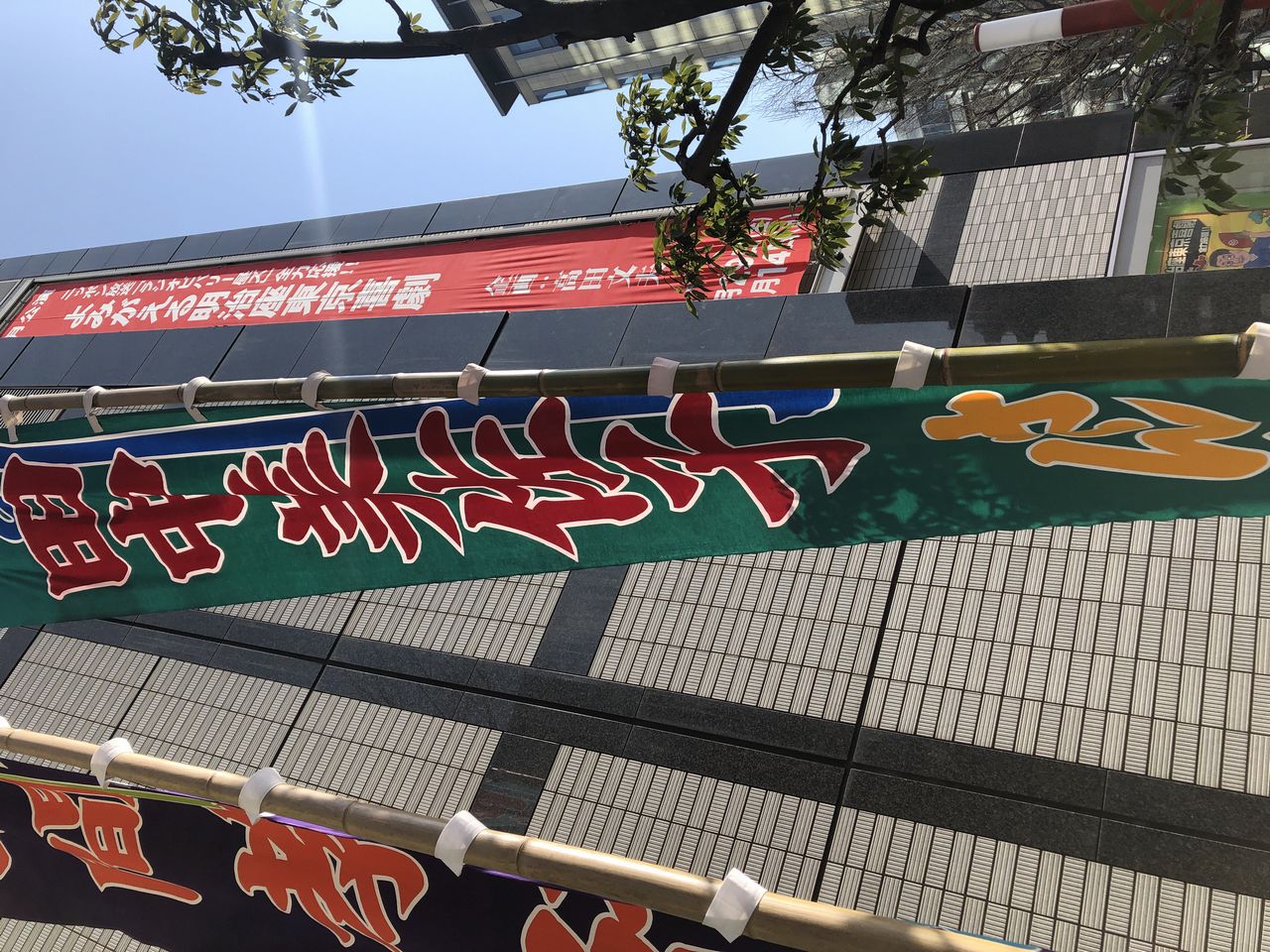 (明治座のノボリ。昔は道路側から見ると決まって逆向きに立っていましたが、最近は改善されたみたいですね)