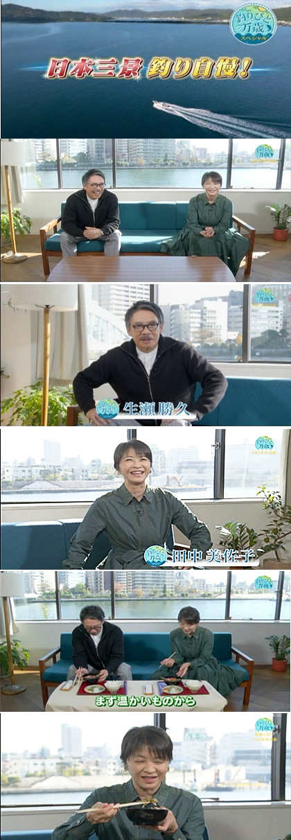 「釣びと万歳SP~日本三景で釣り自慢」。美佐子さんはナレーションでの出演だと思っていましたが、なんとスタジオゲストでした。