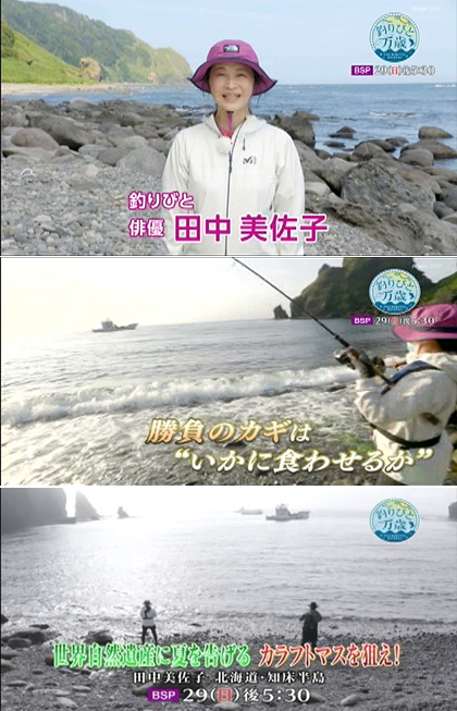 9月3日(日)の「釣りびと万歳」に美佐子さんが出演するらしい。「世界遺産でオショロコマを狙え〜田中美佐子 北海道・知床半島」とか。