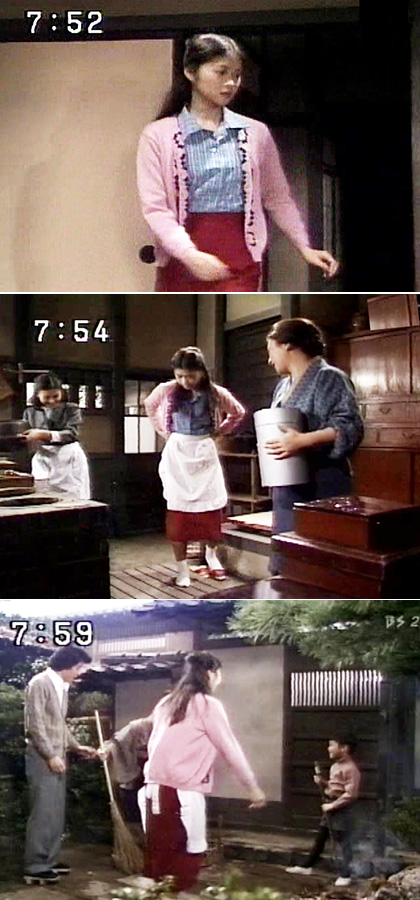 「本日も晴天なり」、初登場した49話の芸名は田中“美佐”でした。でも2回目の登場となる78話(21日放送)から田中“美佐子”に変わります。再生不可と思われたテープが再生できたので間違いありません。以降はずっと“美佐子”のまま。ひょっとして一つのドラマ内で途中から芸名が変わった芸能人は美佐子さんだけかも…。