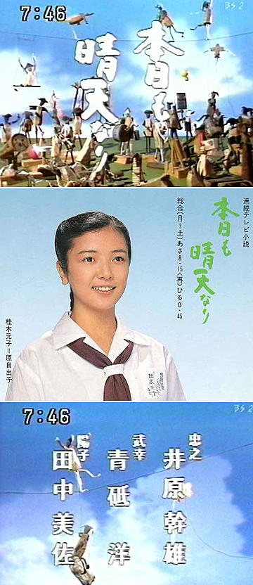 ↓懐かしのNHK朝の連続テレビ小説「本日も晴天なり」(準デビュー作)。ヒロインは生年月日が1日違うだけの原日出子さん。