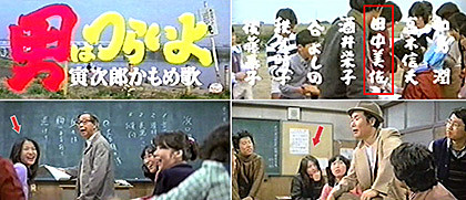 昔、調べたところではデビュー作とされる「想い出づくり」よりも1年前で最も古い出演作(=最も若い)。田中“美佐”時代のチョイ役で定時制高校生役でした。セリフはありませんでしたが一番前の席で高らかに笑っていました。